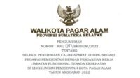 Rincian Formasi CASN PPPK Kesehatan Kota Pagar Alam 2022