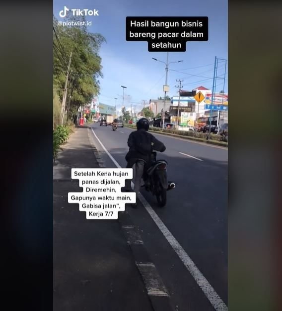“Hasil bangun bisnis bareng pacar dalam setahun. Setelah kena hujan dan panas di jalan, diremehin, nggak punya waktu main, nggak bisa jalan-jalan, kerja 7/7,” tulis @plotwist.id.