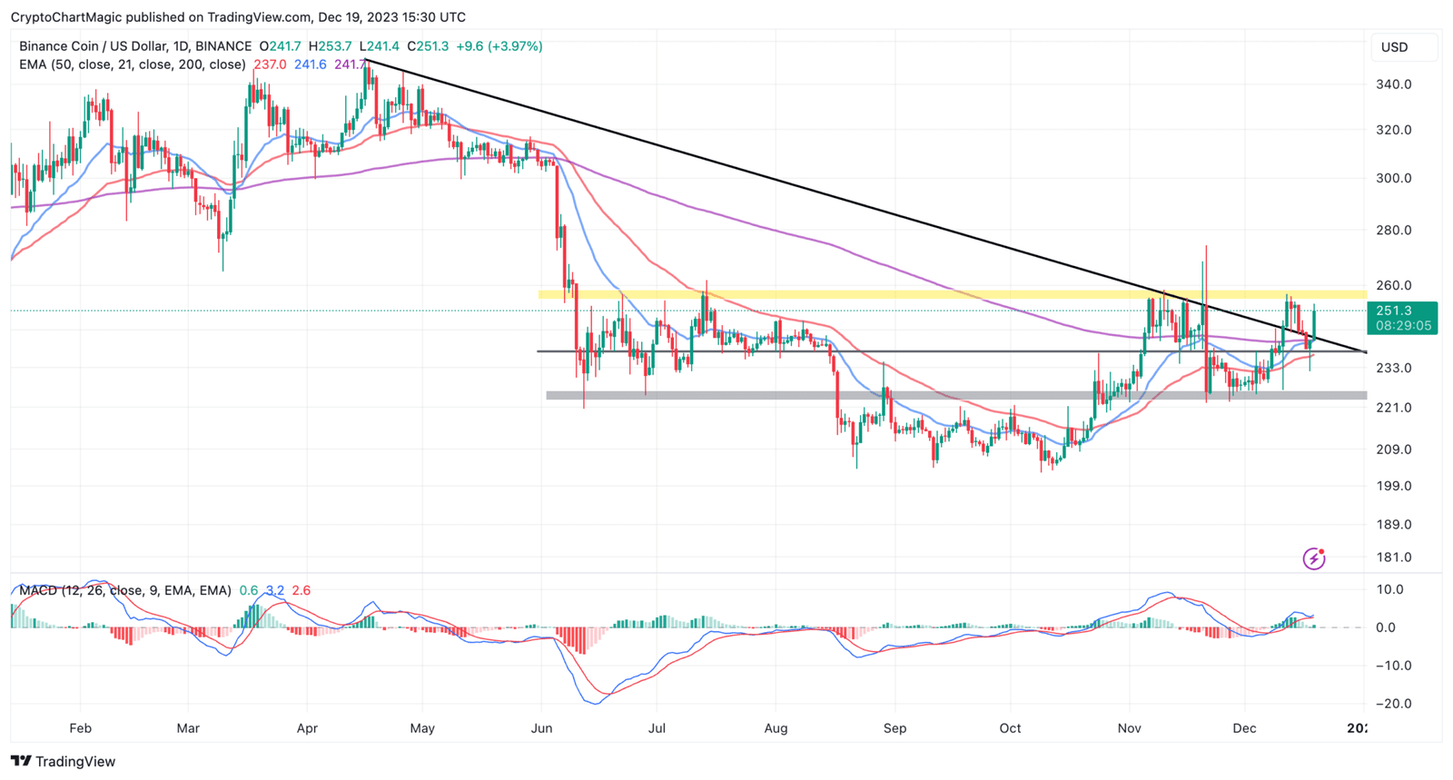 Coingape melaporkan bahwa, penembusan ini telah memotivasi para trader, yang kini lebih cenderung untuk berinvestasi di BNB, terutama mengingat berhasilnya melewati level resistensi US$250.