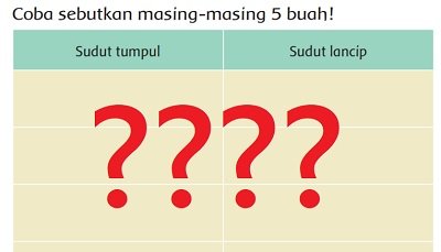 Contoh Sudut Tumpul dan Sudut Lancip – Amatilah benda-benda di sekitar kelasmu! Dapatkah kamu menemukan sudut lancip dan sudut tumpul? Coba sebutkan masing-masing 5 buah! Pembahasan kunci jawaban tema 8 kelas 3 SD halaman 36 , tepatnya pada materi pembelajaran 5 subtema 1 Aku Anggota Pramuka di buku tematik siwa kurikulum 2013 revisi 2018.