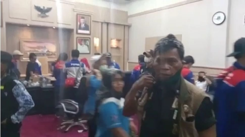 Setelah menunggu terlalu lama, massa kemudian masuk ke ruang kerja gubernur dan memutuskan menunggu di sana. Selain itu, beberapa buruh juga makan camilan di ruang kerja tersebut, dan meminum air minum yang tersedia di sana.