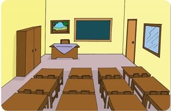 - Di dalam kelas meja guru harus tertata rapi, papan tulis harus selalu bersih, dan kursi-kursi dan meja juga tidak boleh ada coretan.