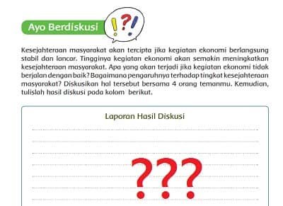Kesejahteraan masyarakat akan tercipta jika kegiatan ekonomi berlangsung stabil dan lancar. Tingginya kegiatan ekonomi akan semakin meningkatkan kesejahteraan masyarakat. Apa yang akan terjadi jika kegiatan ekonomi tidak berjalan dengan baik? Bagaimana pengaruhnya terhadap tingkat kesejahteraan masyarakat? Diskusikan hal tersebut bersama 4 orang temanmu. Kemudian, tulislah hasil diskusi pada kolom berikut.