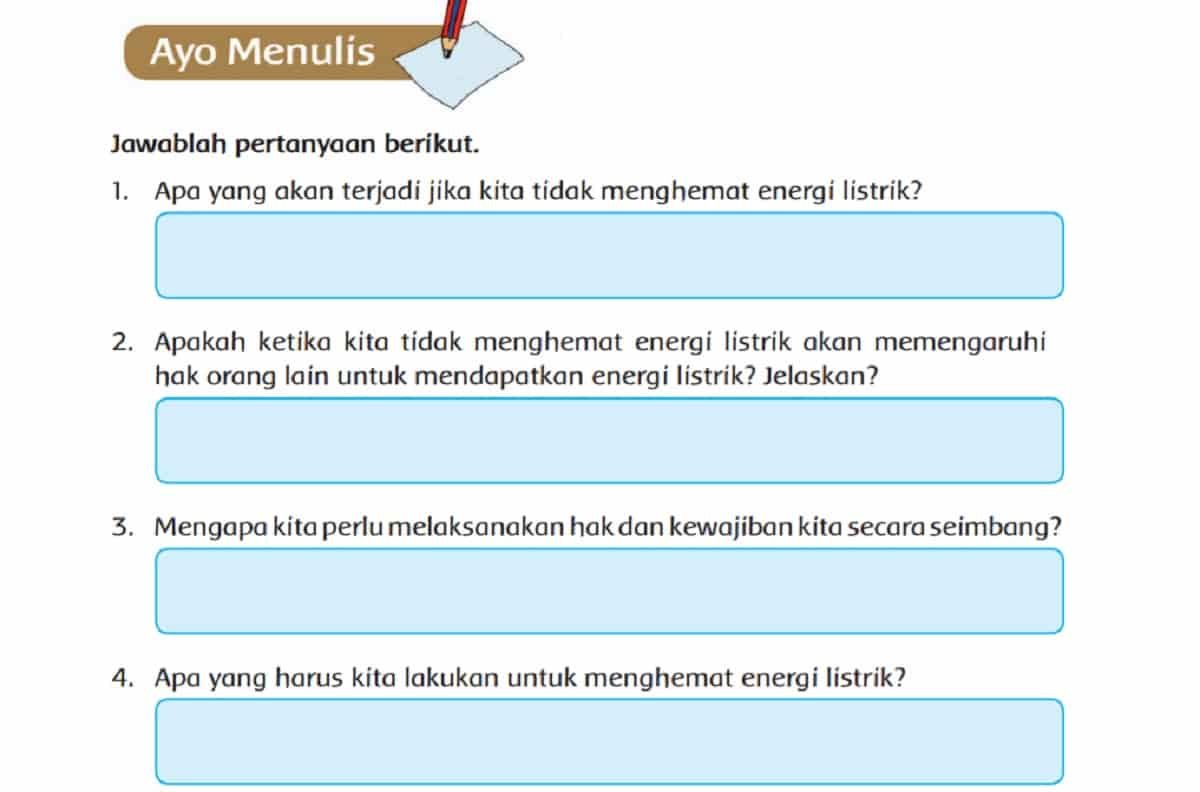 Sekarang saatnya kamu menceritakan pengalamanmu menggunakan listrik di rumah. Apakah kamu sudah melaksanakan hak dan kewajibanmu secara seimbang?