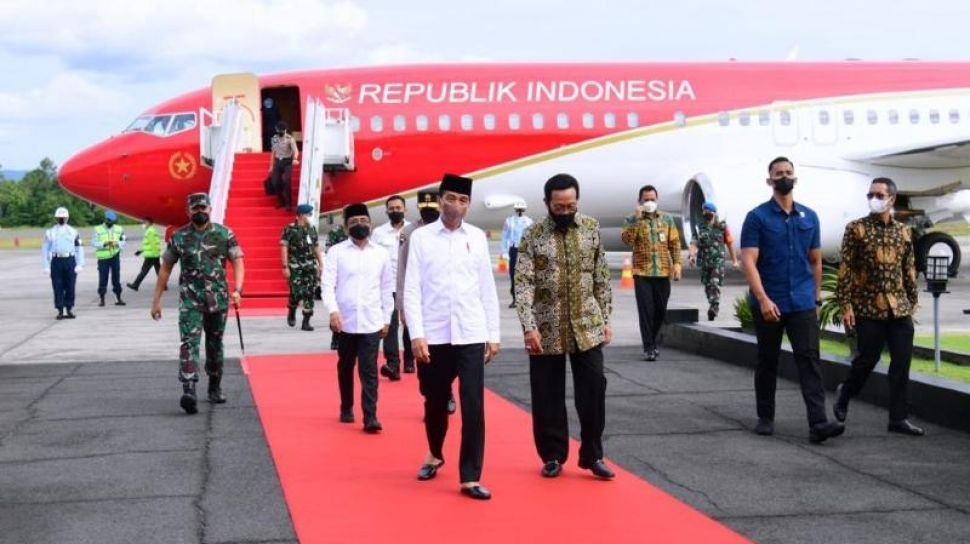 Jokowi yang menggunakan pesawat kepresidenan tiba di Pangkalan TNI AU Adi Sutjipto, Kota Yogyakarta sekira pukul 14.40 WIB. Dari foto yang dibagikan, terlihat Jokowi mengenakan kemeja putih, kopiah serta celana panjang hitam.