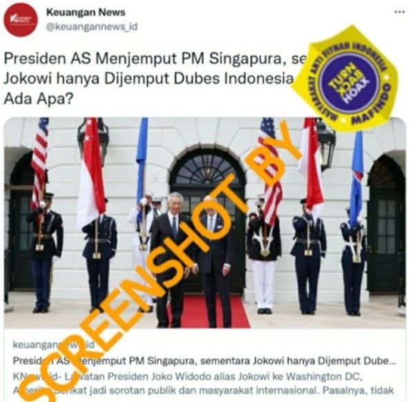 Unggahan tersebut menyatakan bahwa Presiden Amerika Joe Biden bersedia menjemput PM Singapura, namun tidak ketika Presiden Jokowi yang datang.