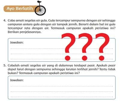 Pembahasan kali ini merupakan lanjutan dari tugas sebelumnya, di mana kalian telah mengerjakan soal coba amati segelas air gula, gula tercampur sempurna dengan air di buku tematik.
