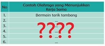 Contoh olahraga yang menunjukkan kerjasama bersama teman, pembahasan kunci jawaban tema 4 kelas 2 halaman 169. Tepatnya pada materi pembelajaran 2 subtema 4 Hidup Bersih dan Sehat di Tempat Umum buku tematik siswa kurikulum 2013 revisi 2017.