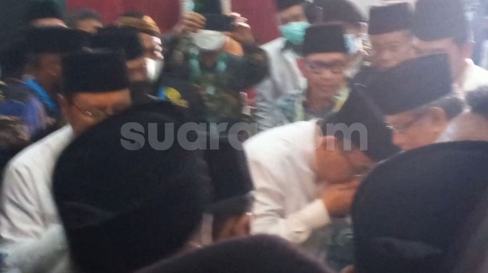 Suara.com – Momen menarik terjadi kala proses pemungutan suara pemilihan calon ketua umum Pengurus Besar Nahdlatul Ulama (PBNU) di sidang pleno ke V Muktamar NU ke-34 yang digelar di Universitas Lampung, Bandar Lampung, Jumat (24/12/2021). Yahya Cholil Staquf sebagai kandidat caketum tampak lakukan cium tangan Said Aqil Siradj di tengah proses tersebut.