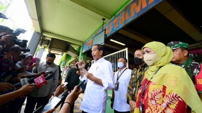 Suara.com – Presiden Jokowi mengunjungi di Pasar Wonokromo, Surabaya, Jawa Timur, Sabtu (18/2/2023). Dalam kesempatan itu, Jokowi mengecek harga bahan pangan seperti beras, minyak goreng hingga telur.