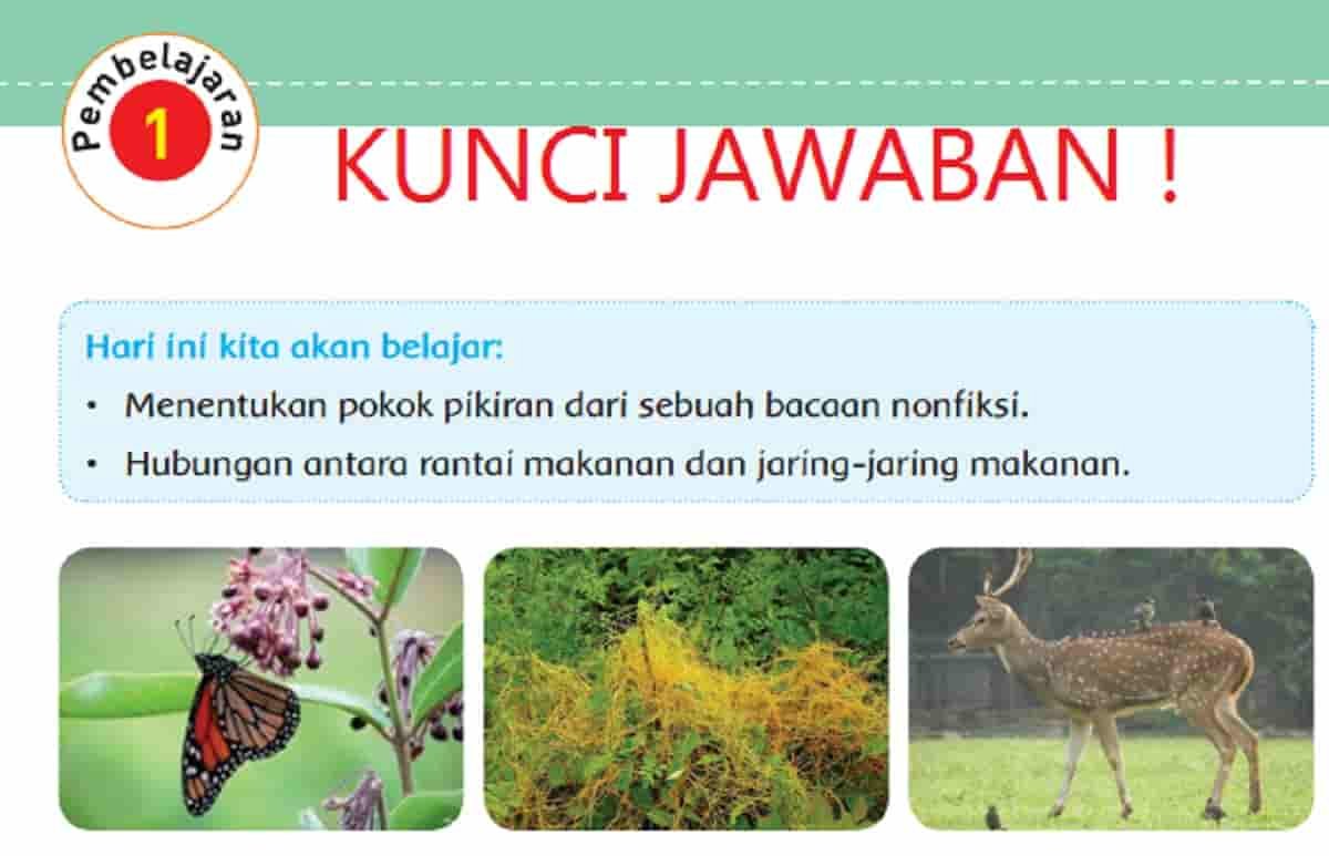 Garis bawahilah beberapa kosakata baru dari bacaan di atas Rantai Makanan dan Jaring-Jaring Makanan, Carilah arti kosakata tersebut dalam Kamus Besar Bahasa Indonesia, pembahasan kunci jawaban tema 5 kelas 5 halaman 103 104 105 tepatnya pada materi pembelajaran 1 subtema 3 Keseimbangan Ekosistem.