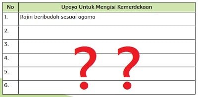 Apa upaya yang dapat dilakukan untuk mengisi kemerdekaan? Tuliskan dalam tabel berikut!