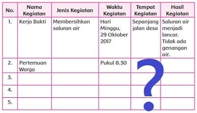 Dengan bantuan anggota keluargamu, catatlah kegiatan-kegiatan yang melibatkan seluruh anggota masyarakat di sekitar tempat tinggalmu. Masukkan hasil pengamatanmu pada tabel di bawah ini.