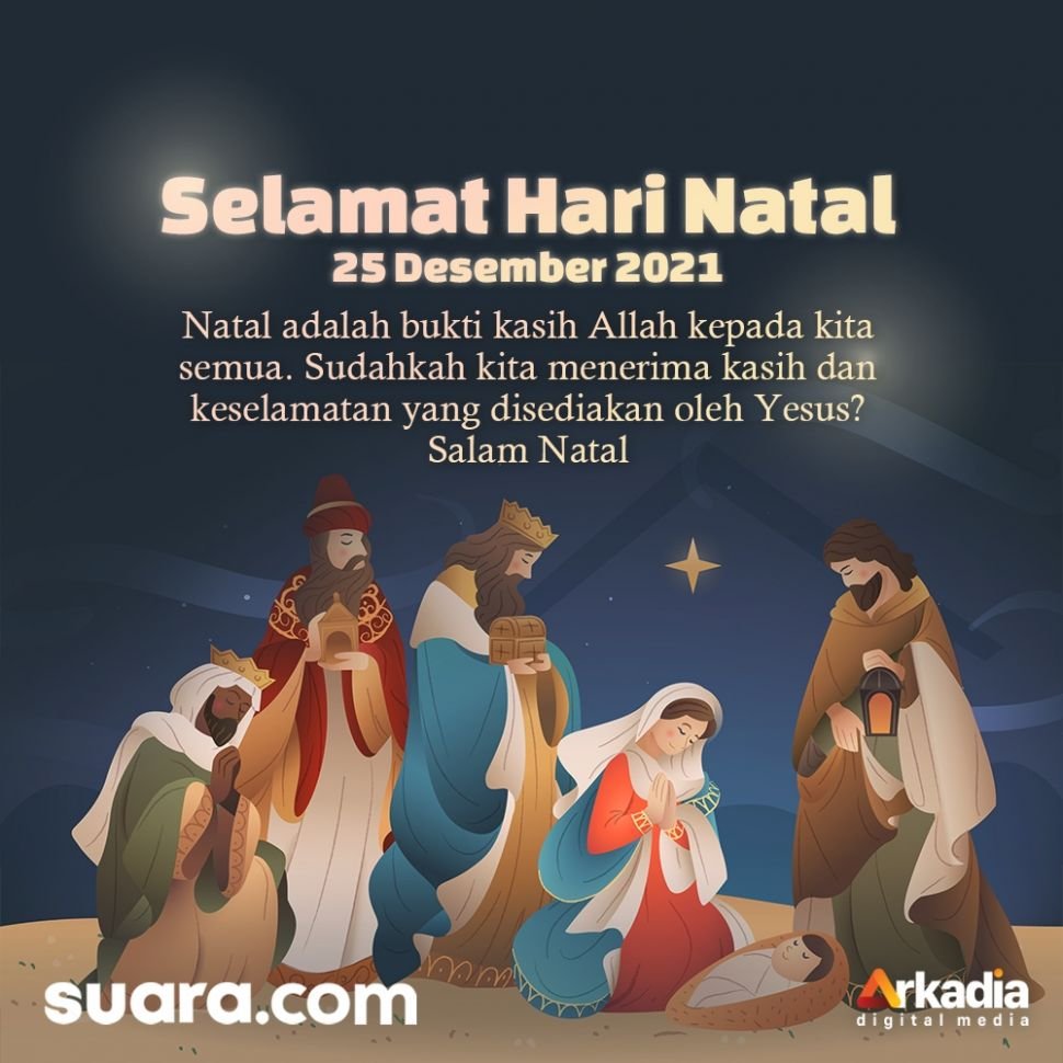 Suara.com – Selamat Hari Raya Natal 2021. Apakah kalian sudah menyiapkan ucapan Natal 2021 untuk dibagikan ke keluarga atau teman? Jika belum, beberapa kartu ucapan Natal 2021 dari Suara.com berikut ini bisa anda pakai.