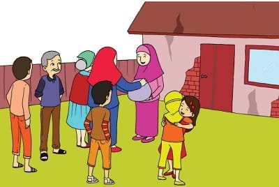 Siti, ayah, ibu, kakek, nenek, dan adik berkunjung ke rumah Ani. Ani adalah teman Siti. Usia mereka sebaya. Ani adalah seorang anak yatim. Ia tinggal bersama ibunya. Ani anak yang pandai dan rajin. Siti sering membantu Ani. Mereka sangat akrab walau jarang bertemu.