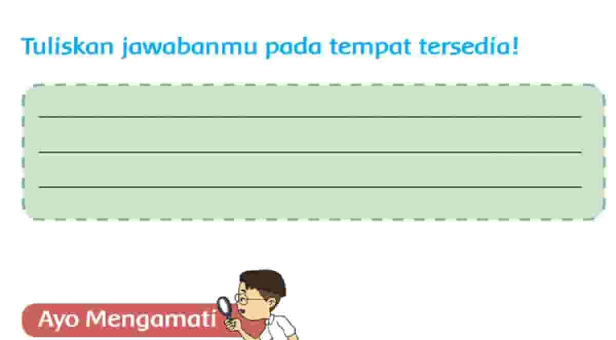Demikian pembahasan kunci jawaban Tema 4 Kelas 3 SD MI halaman 114 tentang Tuliskan Jawabanmu Pada Tempat Tersedia, pada pembelajaran 3 subtema 3. Semoga bermanfaat dan berguna bagi kalian. Terimakasih, selamat belajar!