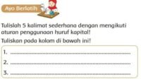 Tulislah 5 kalimat sederhana dengan mengikuti aturan penggunaan huruf kapital! Tuliskan pada kolom di bawah […]