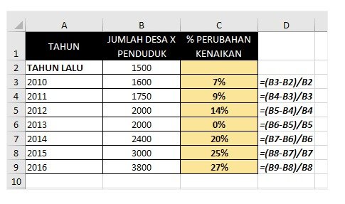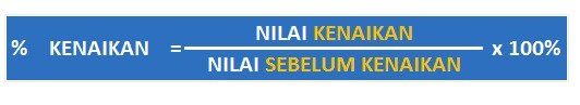 Persentase perubahan kenaikan menunjukkan seberapa besar persen penambahan nilai lama dibandingkan dengan nilai lama. Nilai penambahan dapat kita peroleh dari pengurangan nilai baru dengan nilai lama.