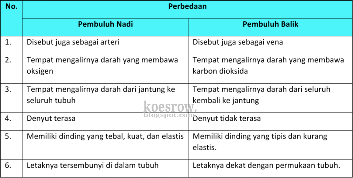 Pada halaman 6, teman-teman diminta mengisi tabel yang disajikan. Teman-teman diminta menuliskan perbedaan antara pembuluh nadi dan pembuluh balik.