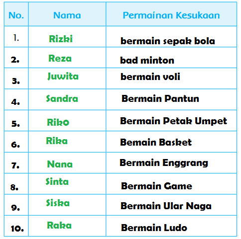 Ayo kamu cari informasi tentang permainan kesukaan dari teman-teman di kelasmu!