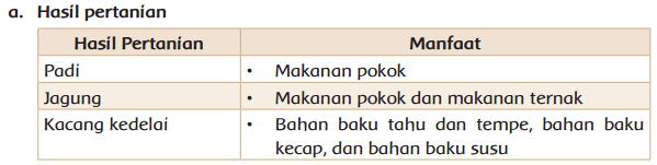 Sumber daya alam yang kita miliki menghasilkan kekayaan alam berupa hasil pertanian, hasil perkebunan, hasil perikanan, hasil hutan, dan hasil tambang.