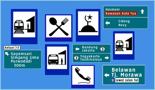 Ketika ingin menuju ke tempat tertentu, kita dapat mencarinya dengan memperhatikan rambu-rambu petunjuk yang diberikan di sepanjang jalan. Rambu petunjuk digunakan untuk menunjukkan tempat atau lokasi tertentu agar mempermudah pengguna jalan menemukan lokasi yang dituju.