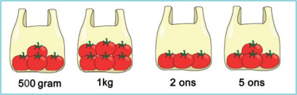 Buatlah berbagai perbandingan berat tomat dengan berbagai satuan ukuran berat. Jangan lupa menggunakan tanda >, <, atau =.