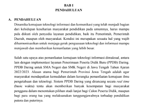 Salah satu upaya atas pemanfaatan kemajuan teknologi informasi dimaksud, antara lain dengan implementasi layanan Penerimaan Peserta Didik Baru (PPDB) Daring. PPDB Daring untuk SMA Negeri dan SMK Negeri di Jawa Tengah Tahun Ajaran 2022/2023.