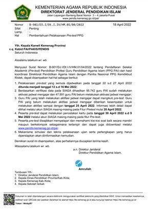 Demikian informasi mengenai penundaan pelaksanaan pre test PPG Pendidikan Agama Islam tahun 2022, Semoga bermanfaat.