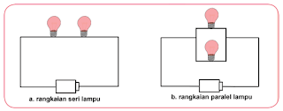 Rangkaian seri disusun secara bersambung atau sejajar dan paralel disusun secara berderet.