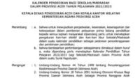 Kalender Pendidikan Sekolah Madrasah Provinsi Aceh TP 2022/2023