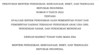 Edaran Permendibudristek Tahun 2022 tentang Evaluasi Sistem Pendidikan