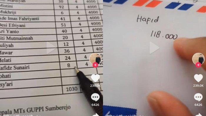 “Alhamdulillah, dapat Rp 118 ribu dengan rincian 8 kali masuk, perjamnya cuma Rp 4 ribu jadi 8 kali 4 sama dengan Rp 32 ribu. Kemudian aku ada honor tetap karena aku sering ke sekolah ngurusin ini itu, Rp 12 ribu kali 8 bolak-balik ke sekolah, total Rp 96 ribu,” jelasnya dalam video yang ia unggah pada Kamis (12/5/2022).